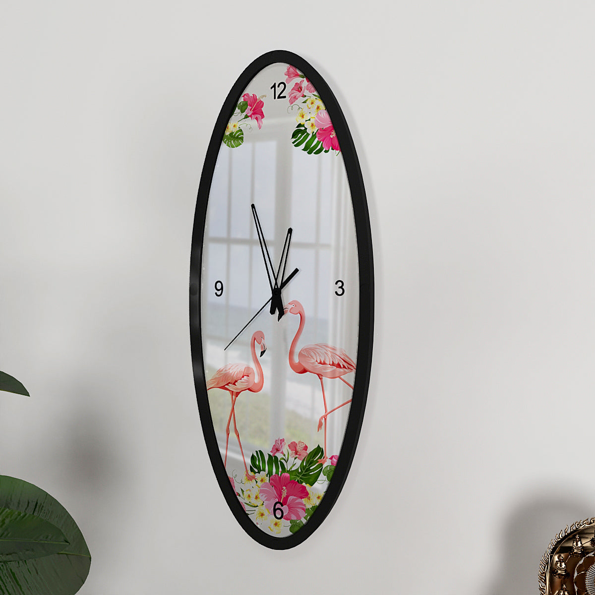The Flamingo Dance Wooden Oval Wall Clock