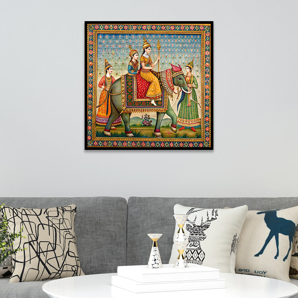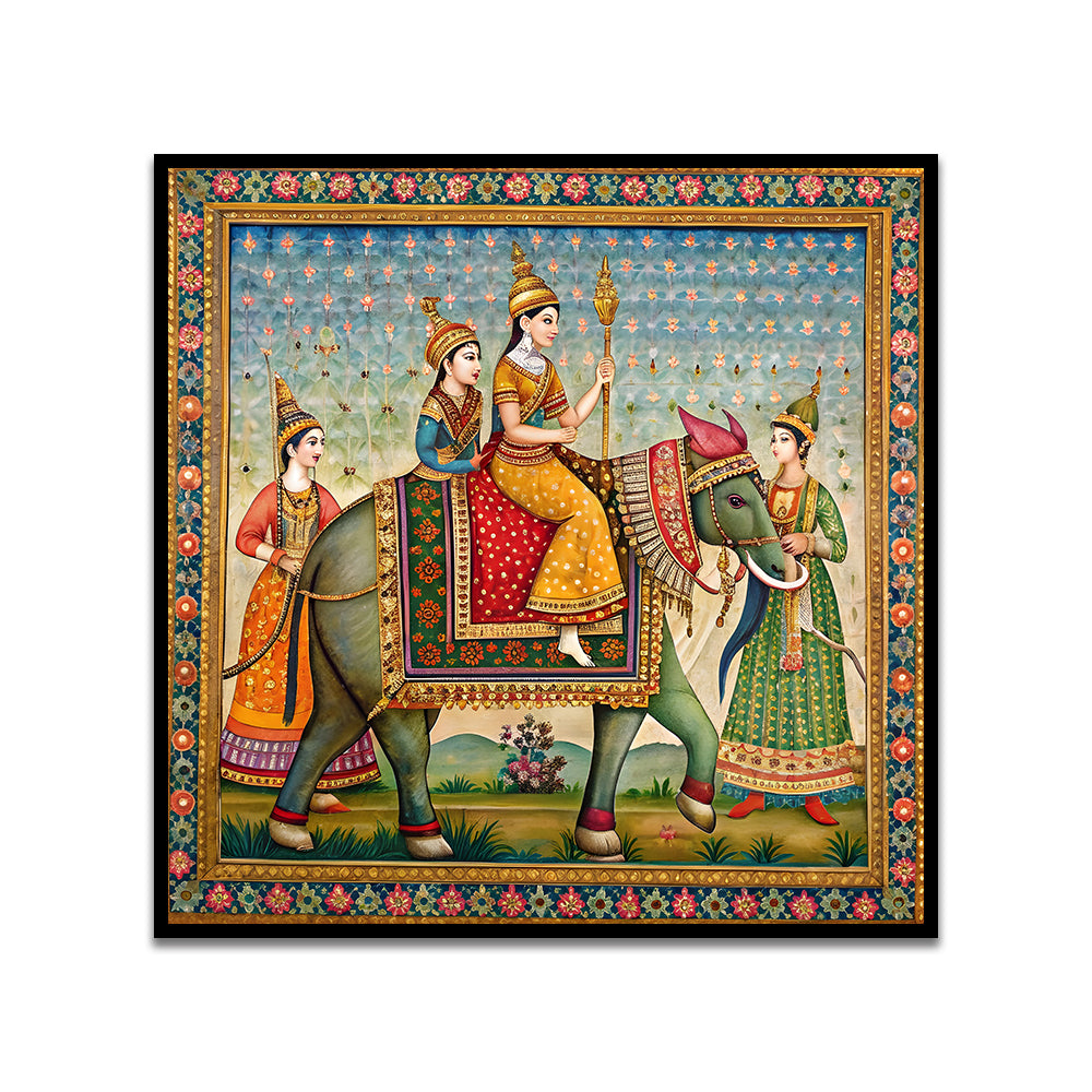 Traditional Indian Elephant Madhubani Canvas Wall Painting