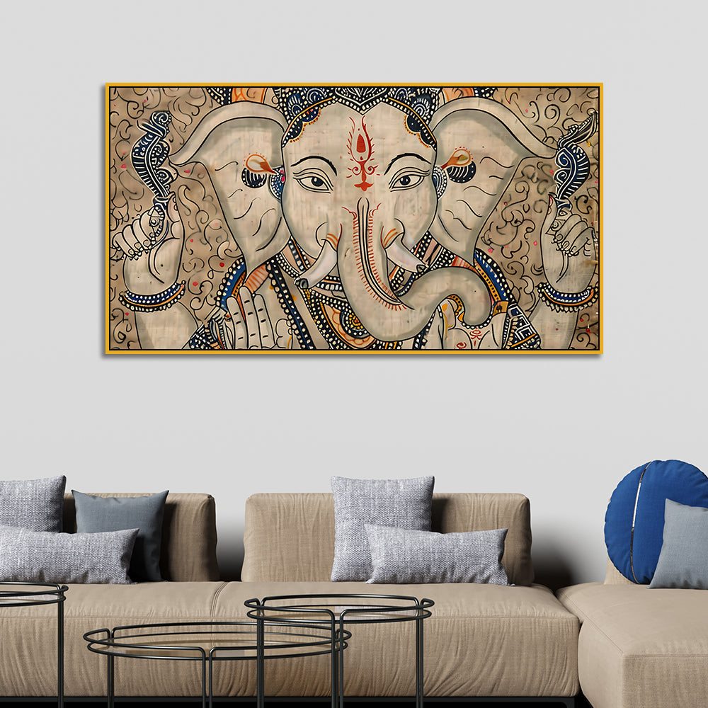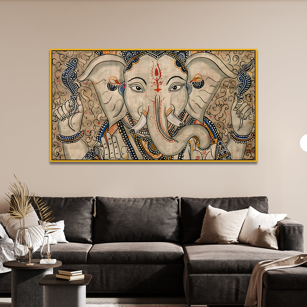 Traditional Lord Ganesha Vintage Traditional Madhubani Canvas Wall Painting