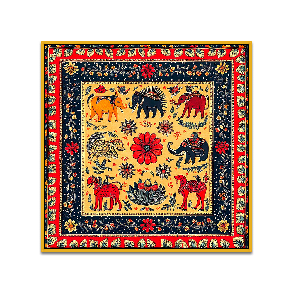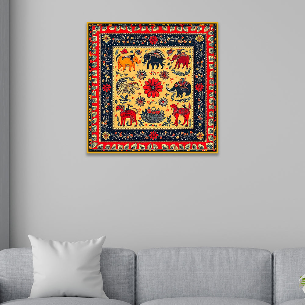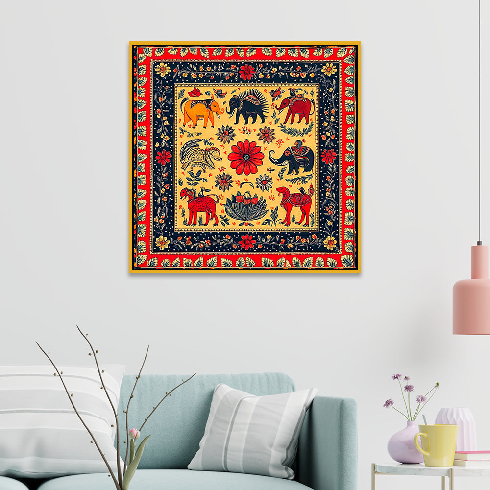 Traditional Madhubani Folk Art Canvas Painting for Home and Office Décor