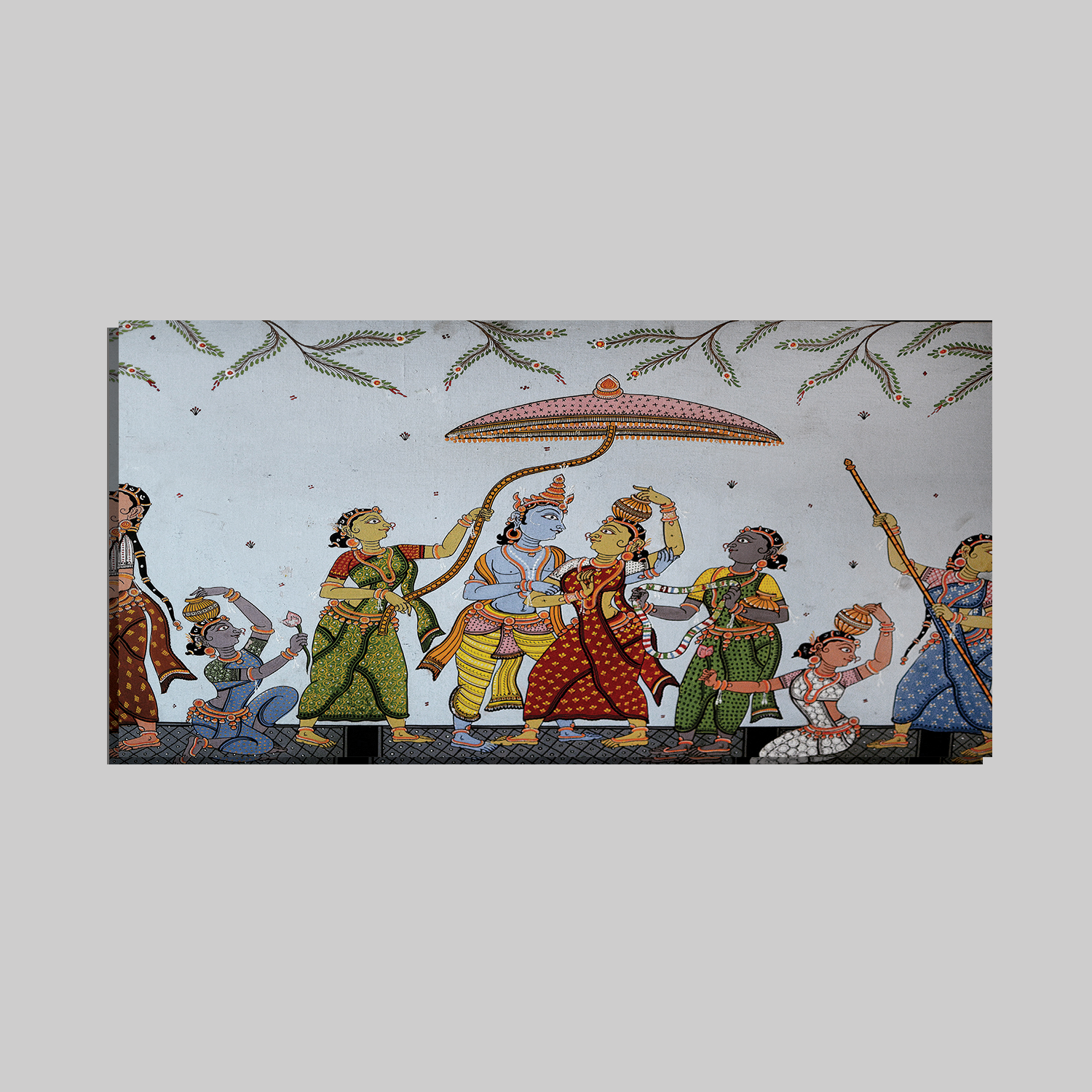 Traditional Pattachitra Painting – Krishna with Gopis Under Royal Umbrella