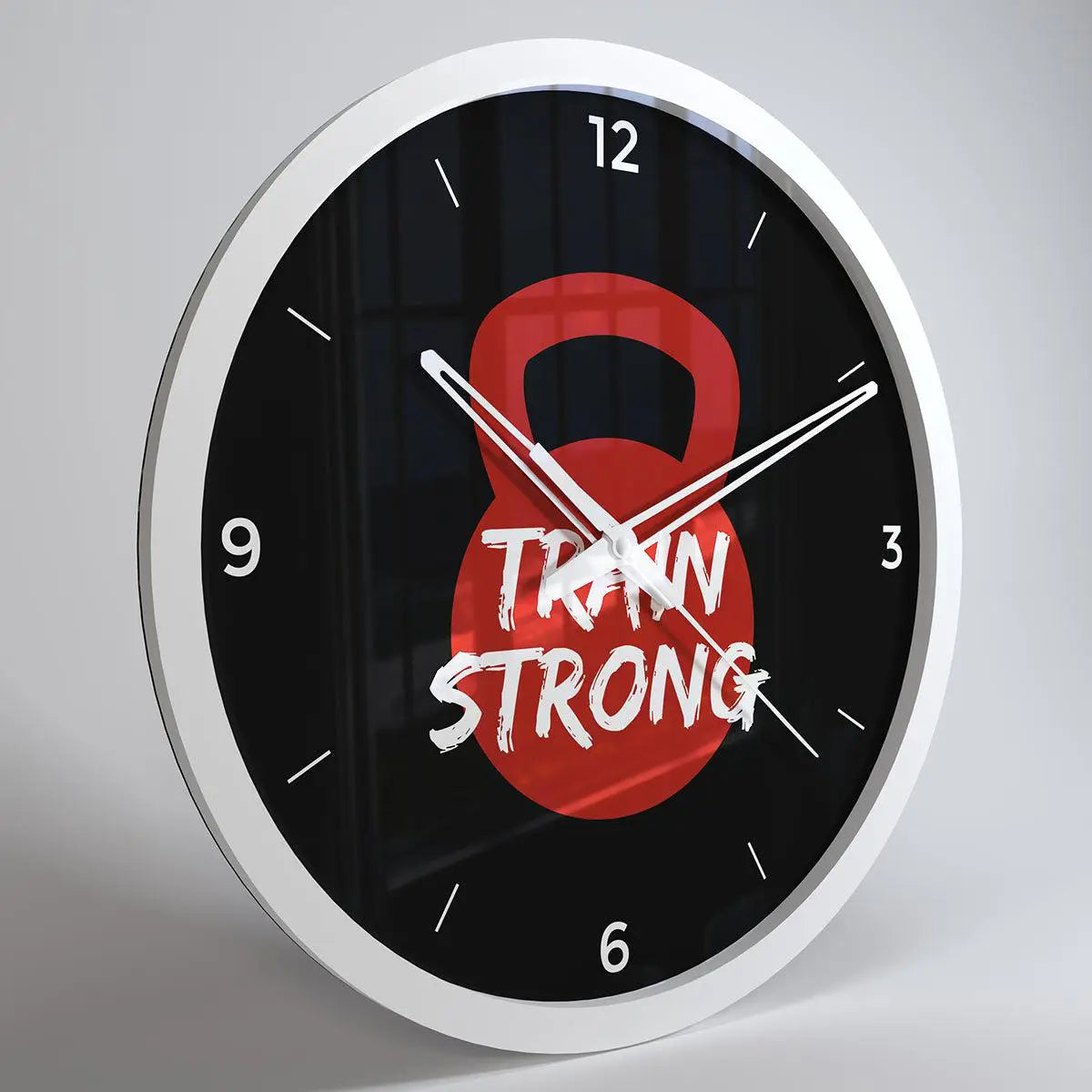 Train Strong Quirky & Motivational Gym Wall Clock- Black Frame