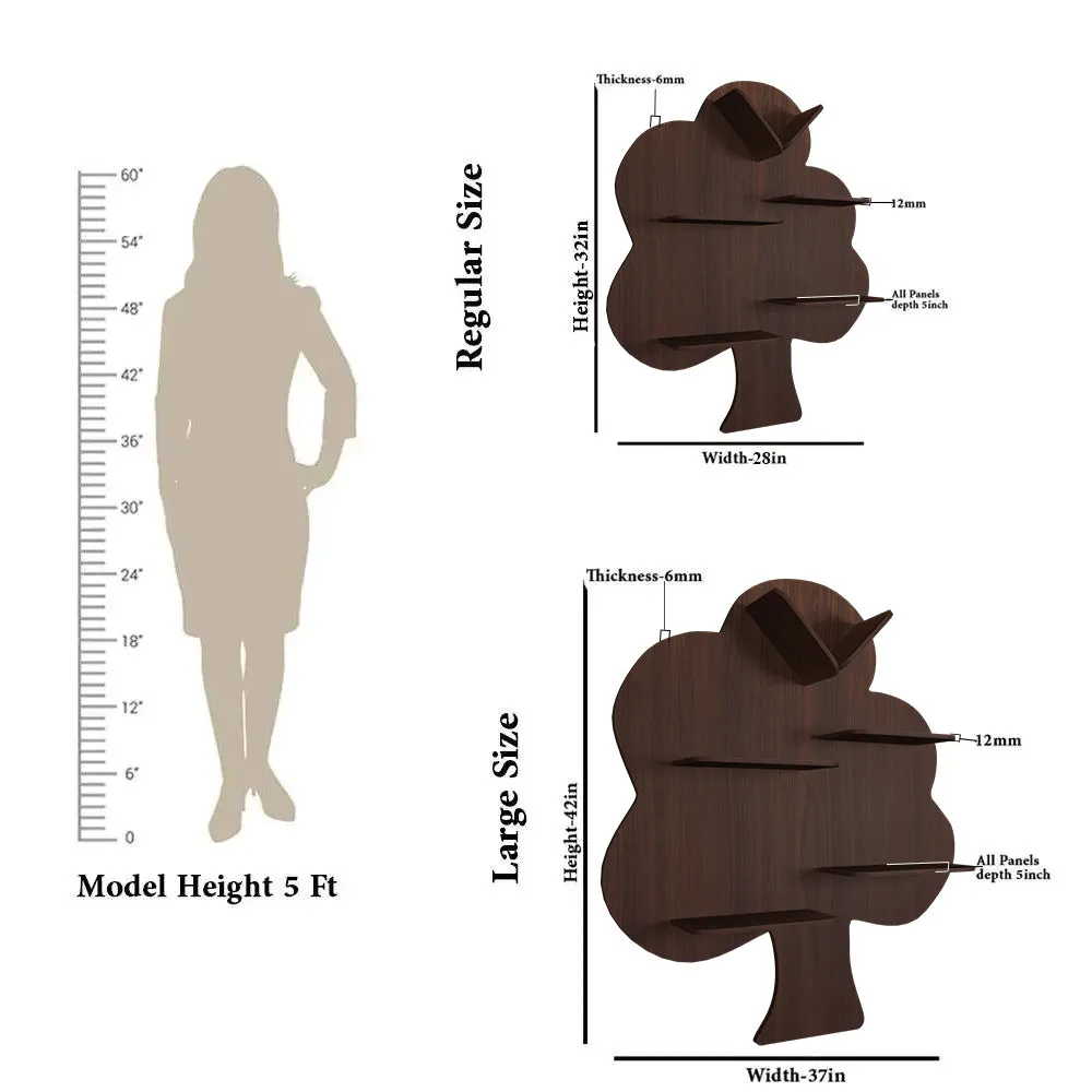Tree Wood Wall Shelf / Book Shelf, Walnut Finish