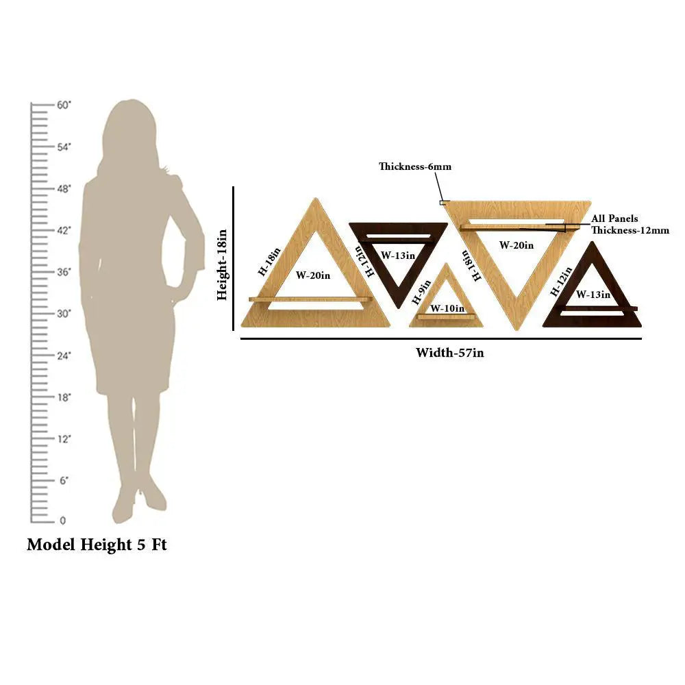 Triangle Shape Wood Wall Shelf / Book Shelf,Walnut and Oak Finish