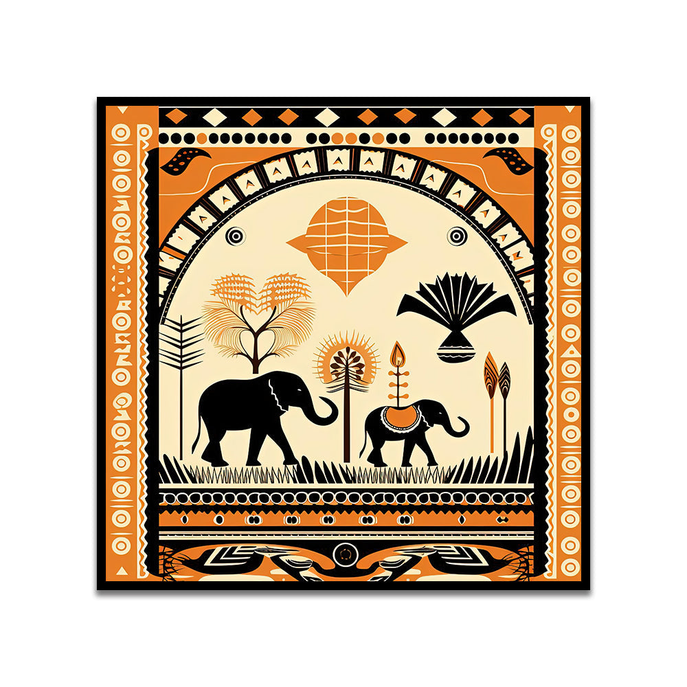 Tribal Elephant African-Inspired Folk Art Canvas Wall Painting