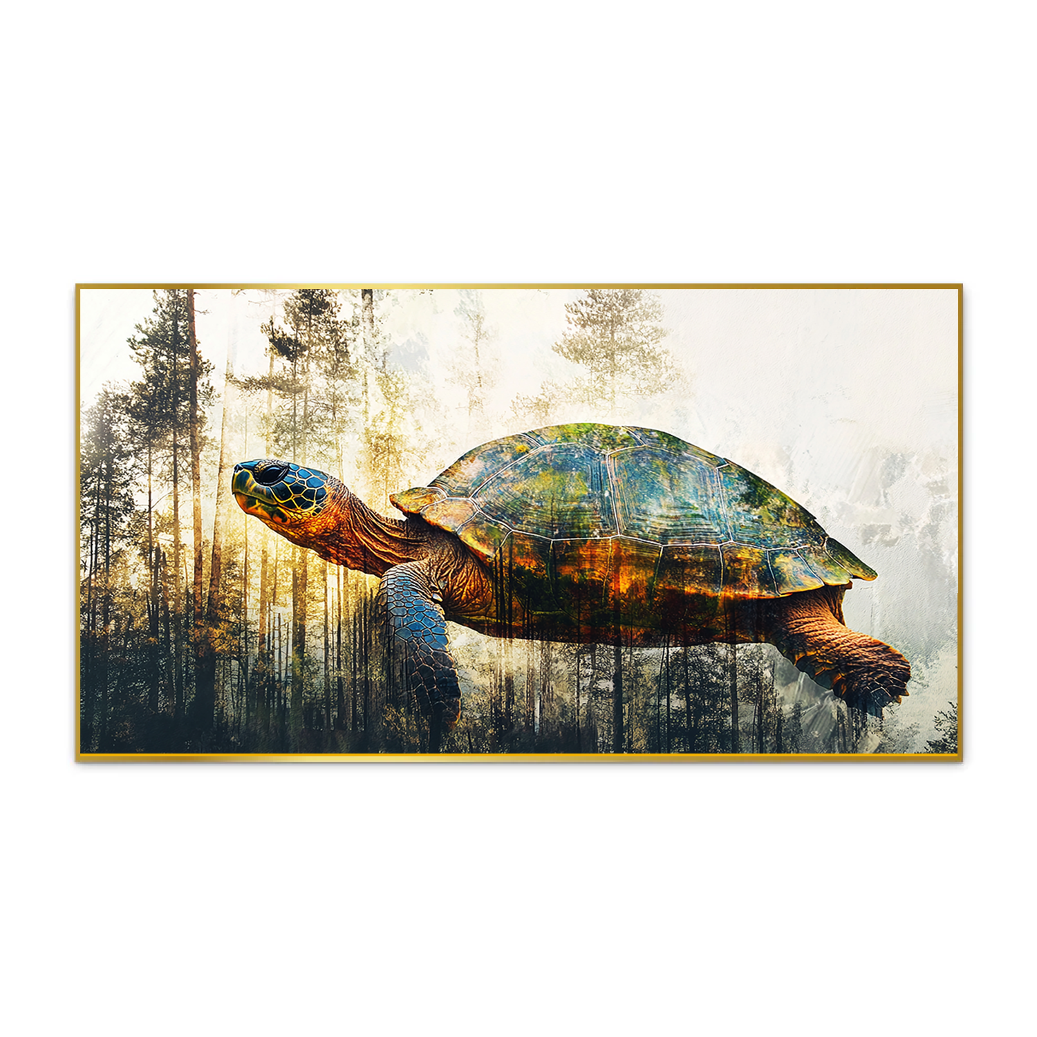 Turtle With Reflection Trees Its Back Reflection Water Canvas Wall Paintings