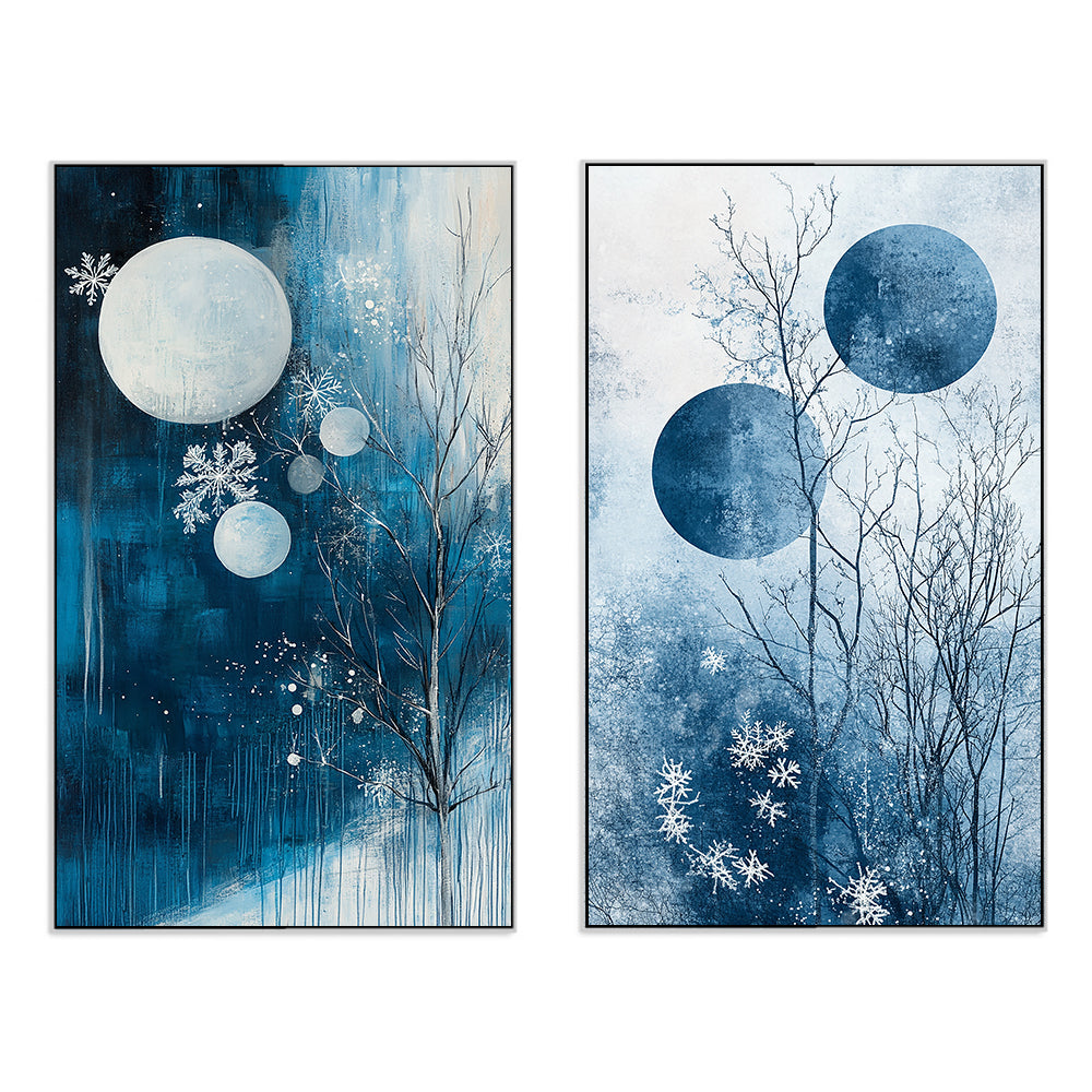 Vibrant Abstract Blue Modern Canvas Wall Painting Two Pieces