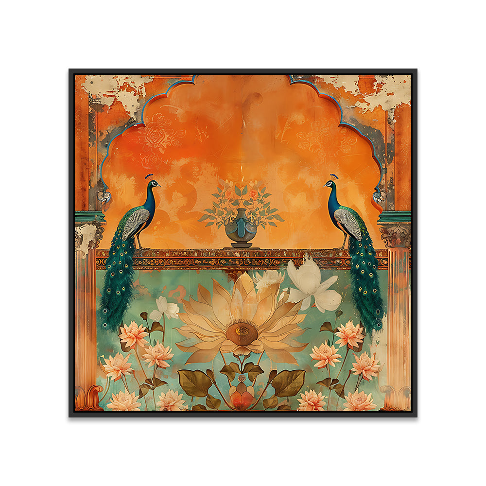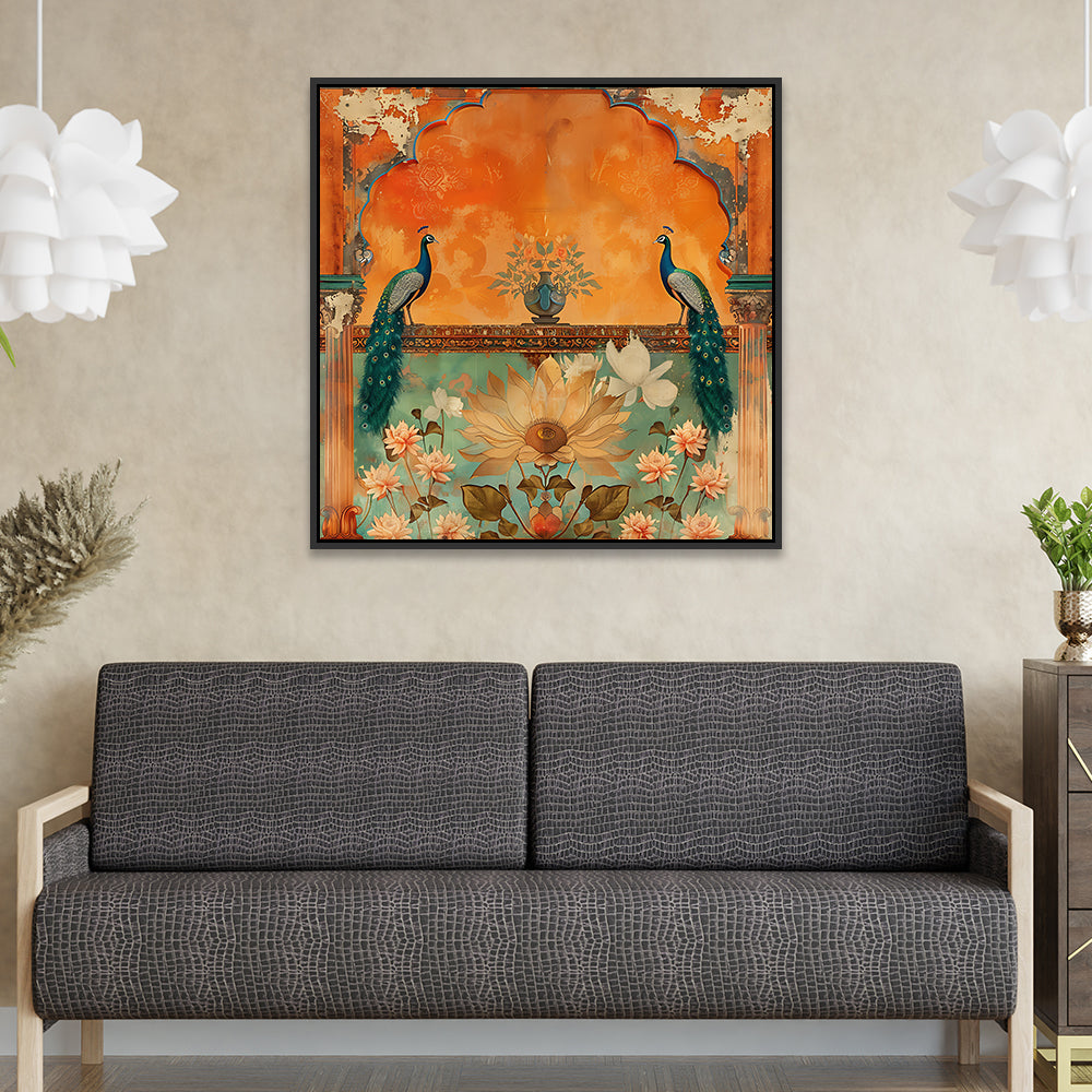 Vibrant Blue & Gold Square Peacock Painting for Home Décor