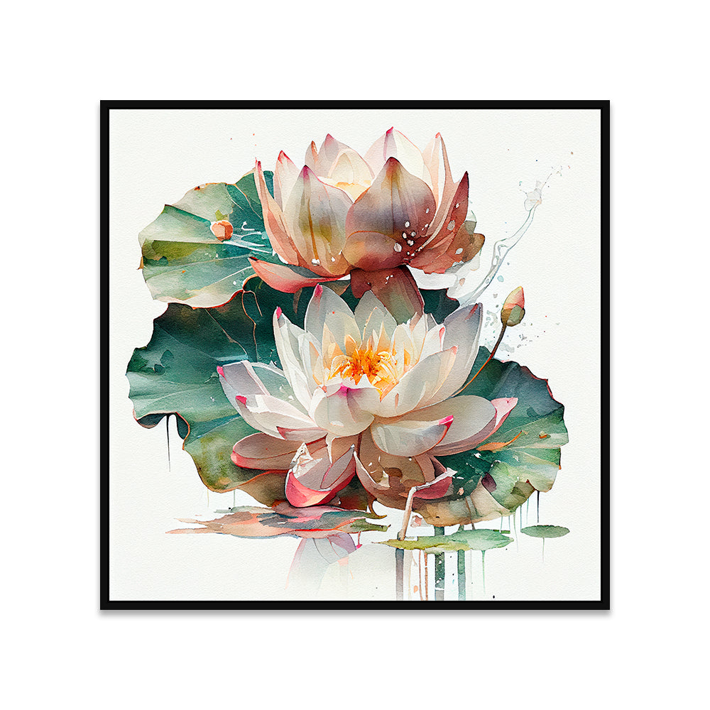 Vibrant Lotus Flower Canvas Floating Framed Wall Painting