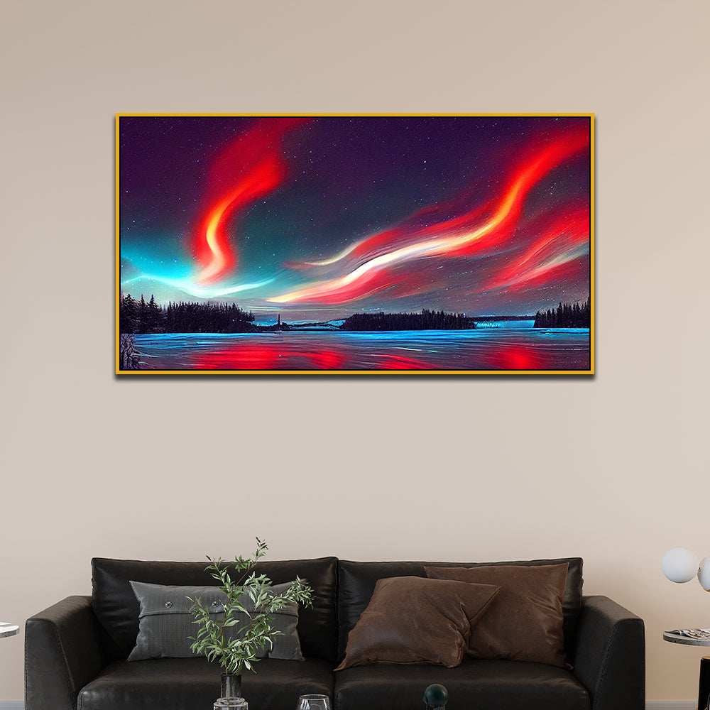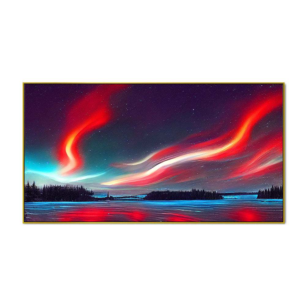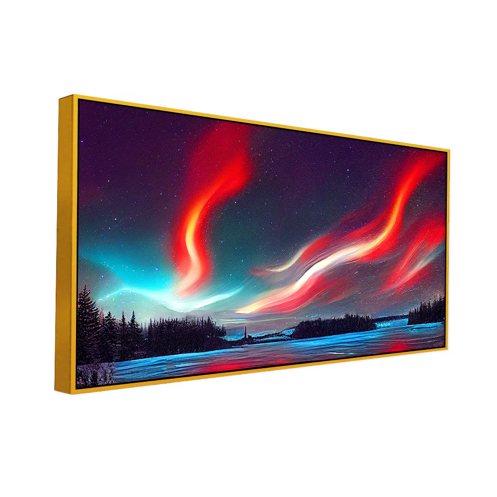Vibrant Nordic Night Sky Landscape Canvas Wall Painting With Floating Frame