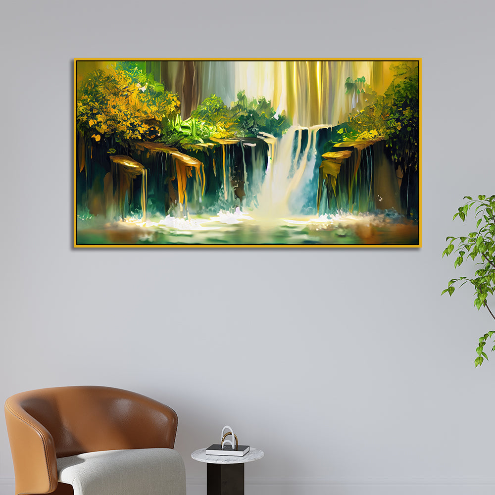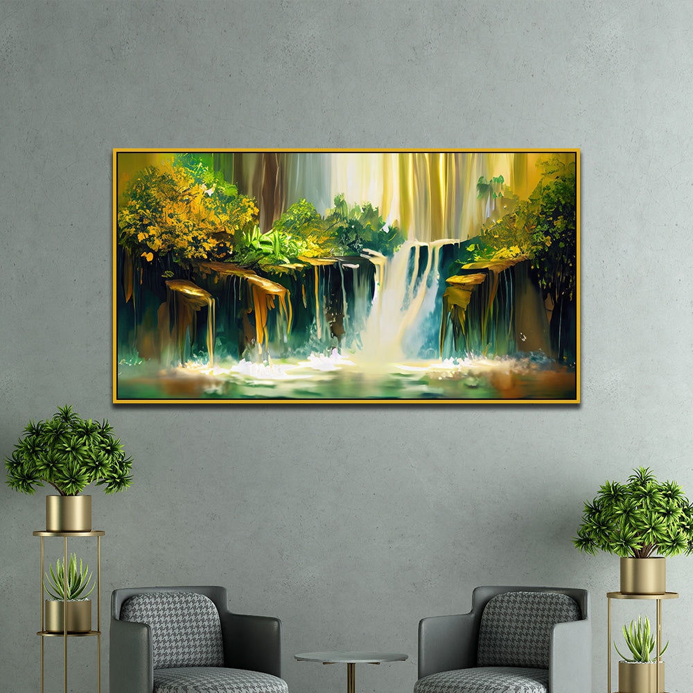 Vibrant Waterfall Landscape Vastu Canvas Wall Painting