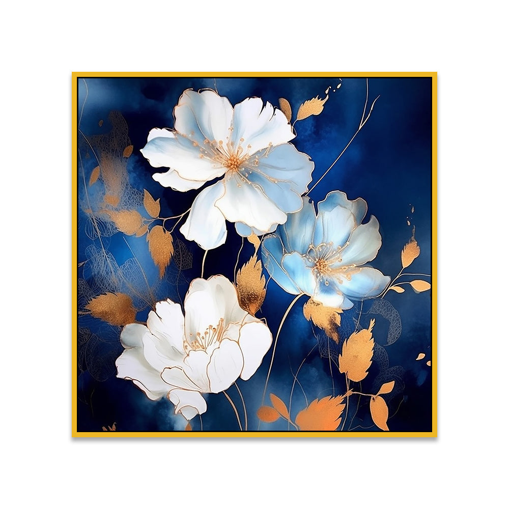 Vintage White and Gold Flower Digital Printed Canvas Wall Painting