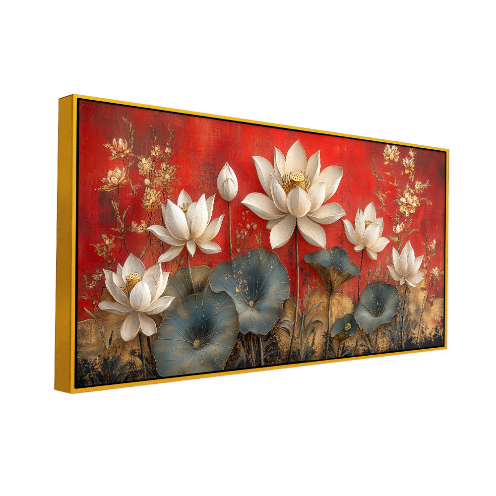 White & Golden Lotus Floral Vastu Canvas Wall Painting for Home Décor