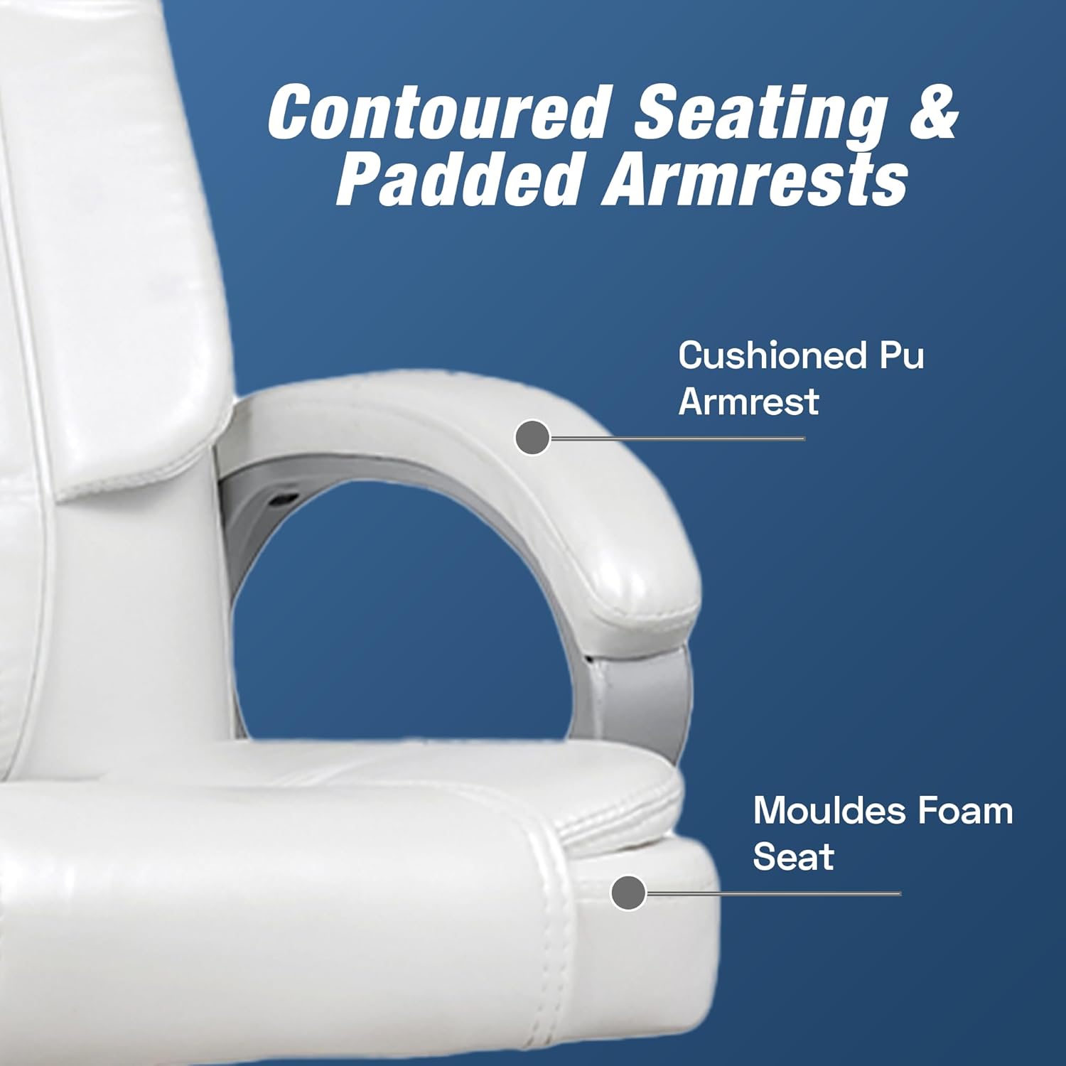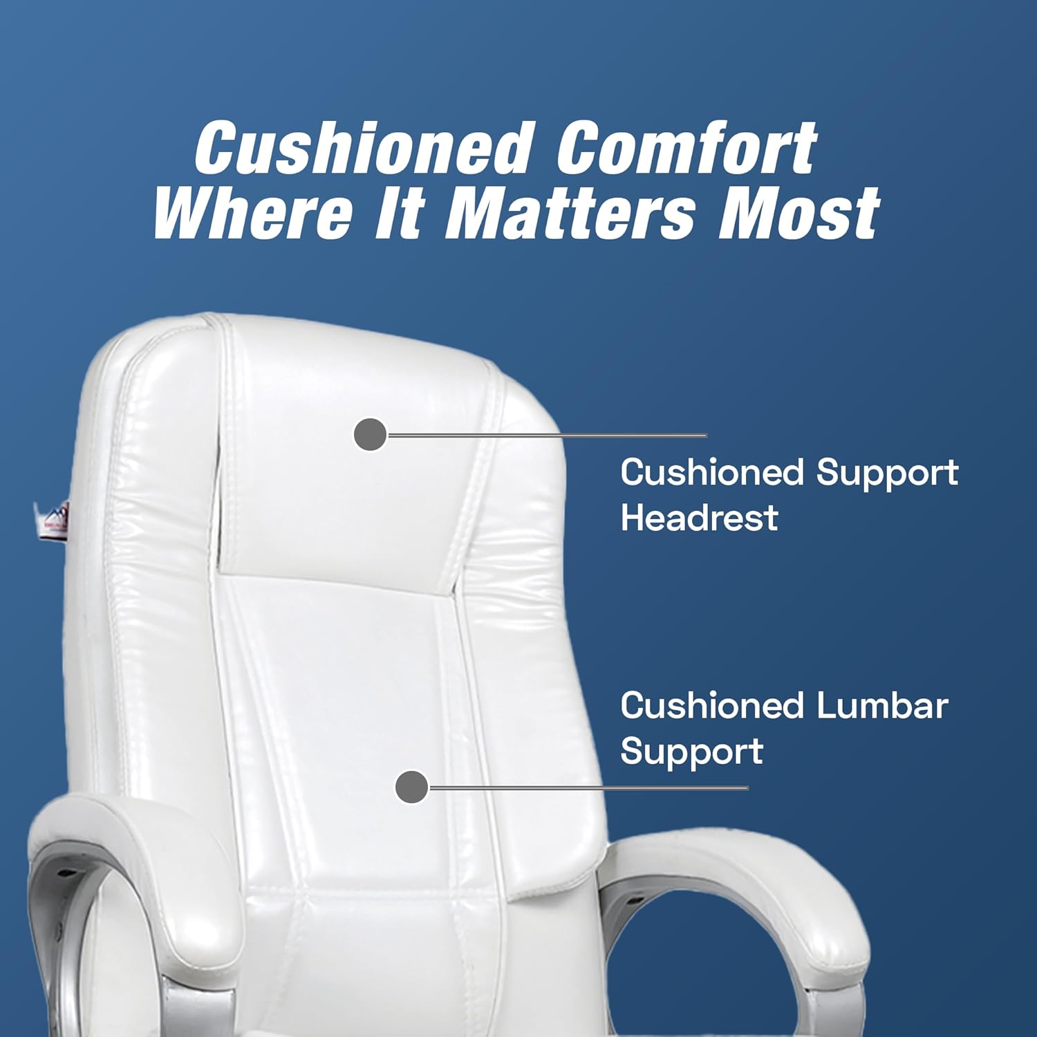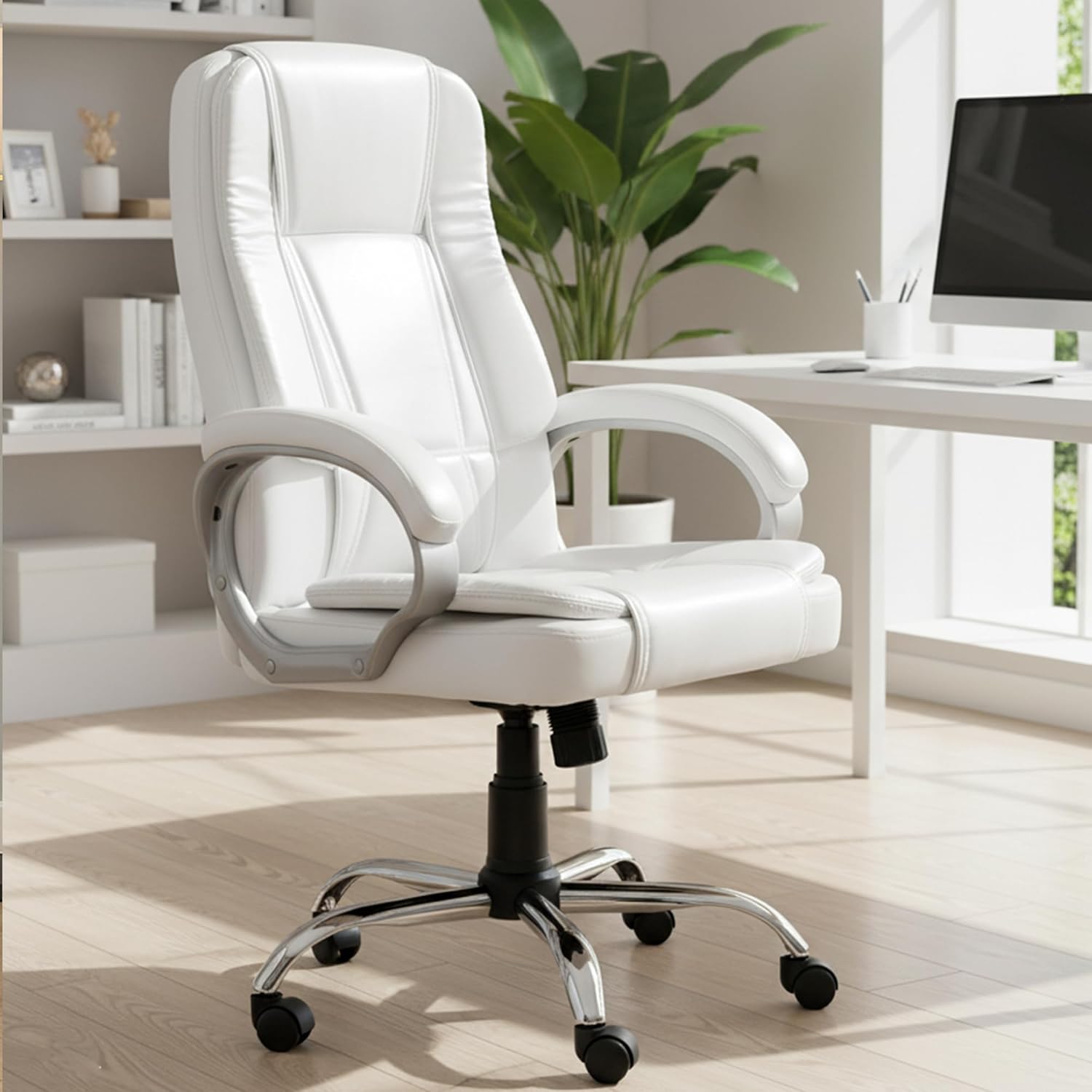 White Leatherette High Back Swivel Office Chair | Revolving Seat with Heavy Tilting Mechanism & Strong Chrome Stand