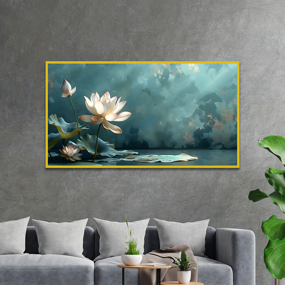 White Lotus Vastu Painting For Wall Decor for living room, Hotels Wall Décor