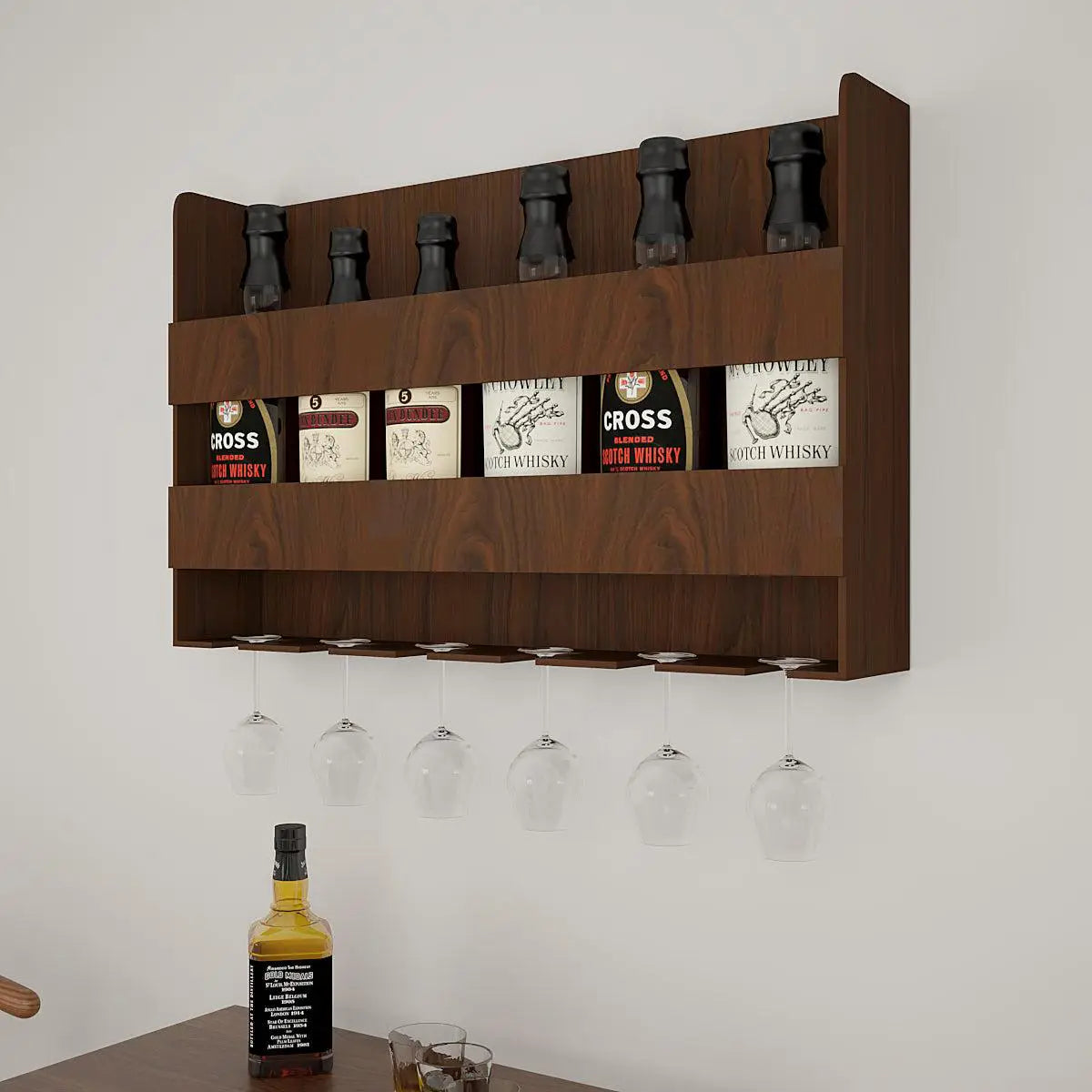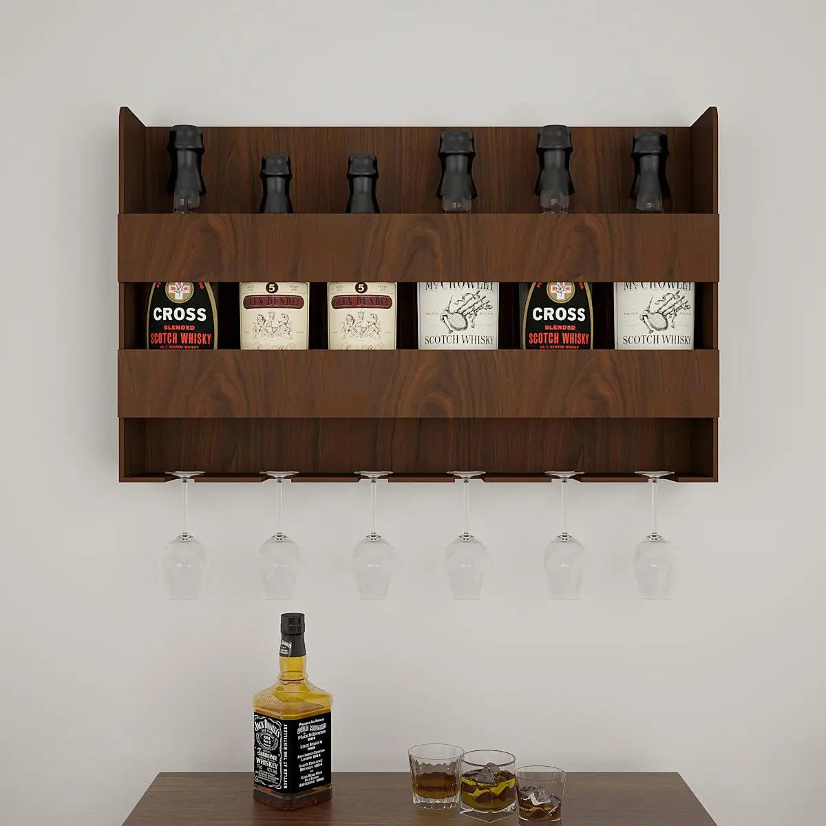 Sturdy Backlit MDF Bar Wall Shelf / Mini Bar Cabinet (Walnut Finish)