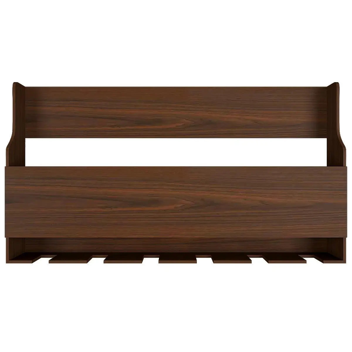 Spacious Backlit MDF Bar Wall Shelf / Mini Bar Cabinet in Walnut Finish