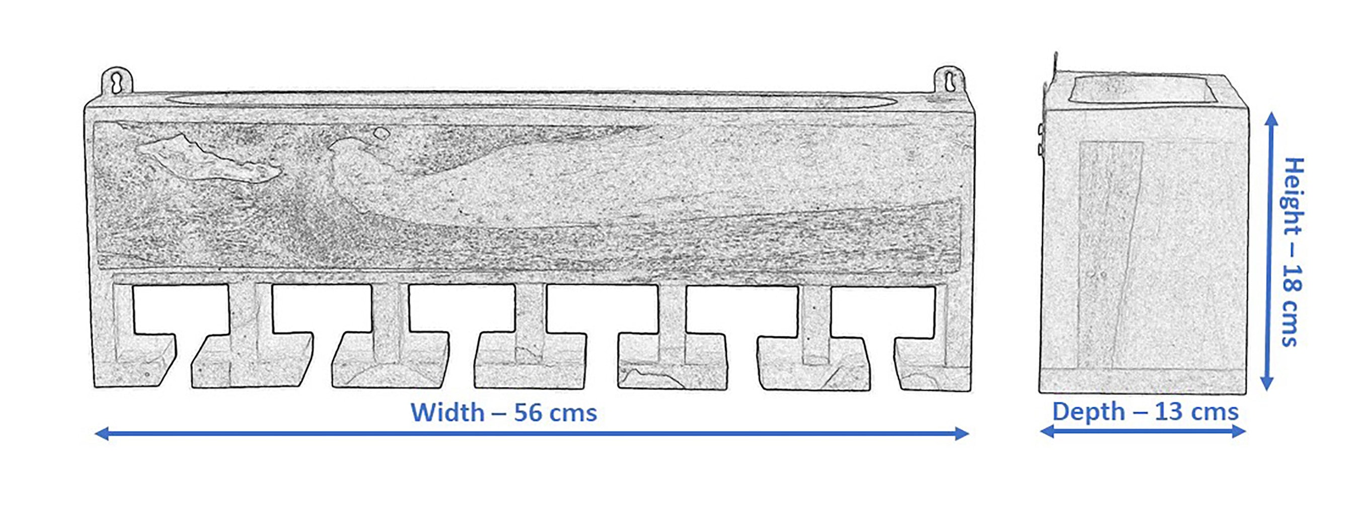 | Size: Width - 57 cms, Depth - 13 cms, Height - 18 cms | Please refer to the size image for more details | Capacity: It can store 6 wine glasses in inverted vertical position. | Material: Made of premium quality solid wood for sturdiness and unique wood texture | Finish type: Matt finish | Ideal Mini Bar Cabinet, suitable for vases, show pieces and planters etc.