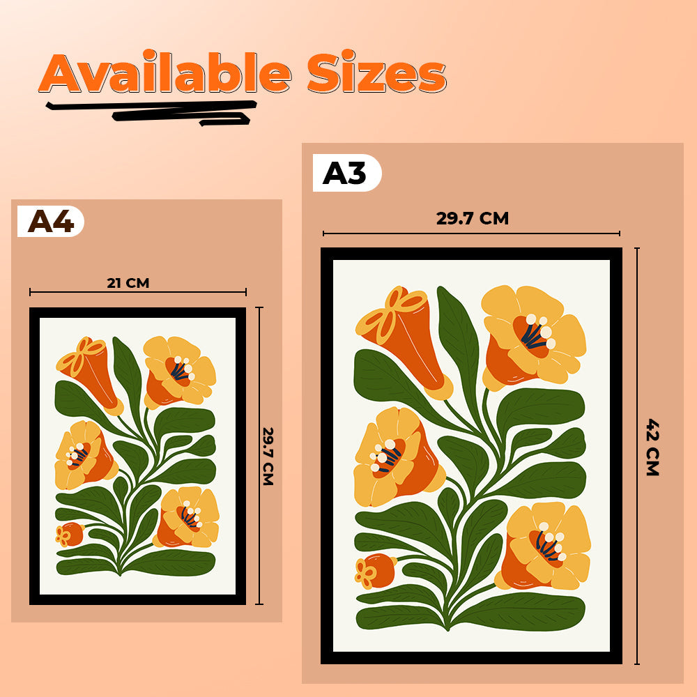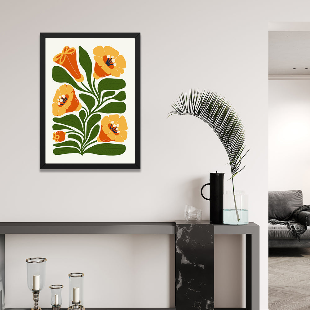 Yellow & Orange Modern Floral Wall Art Photo Frame Painting
